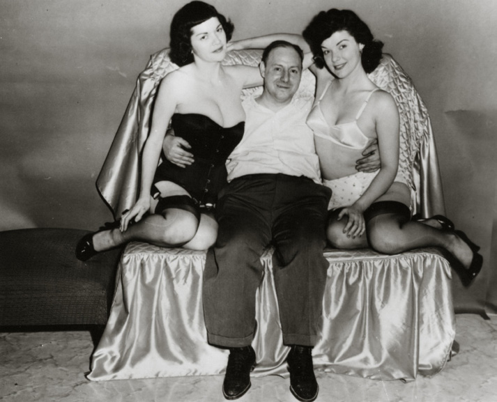 Irving Klaw made a fortune selling pin up photos of celebrities from his 14th st bookstore in NYC, calling himself the PINUP KING and eventually drawing controversy as the authorities realized that he was also selling bondage and fetish photos and art. In 1957 Bettie was summoned as a witness against him but her experiences with Irving and his sister Paula were mainly positive and as a result she was never called upon to testify. The double feature of Teaserama and Varietease played theaters until the early 60s, however he continued to be hounded by law enforcement and died at age 55 in 1966. According to a 1977 Village Voice interview with Paula Klaw, Irving’s sister and business partner: