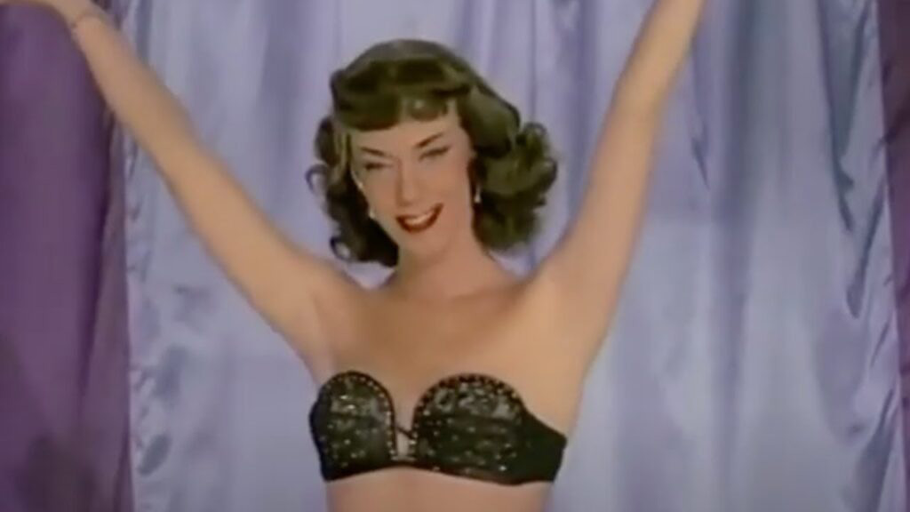 While there are many acts that appear in both films, the headliners were the draw at the time; Varietease from 1954 features Lili St Cyr, the blonde bombshell sung about by The Who in their song Pictures of Lili, and 1955s Teaserama stars the legendary Tempest Storm and BOTH of them feature the iconic Bettie Page. Klaw made these after the success of the 1953 film Striporama (1953, Jerald Intrator) also starring Page and St Cyr. Tempest Storm had previous experience on screens thanks to Russ Meyer who was so inspired by her gargantuan juggs that he made his first movie, the now lost 40 minute film French Peep Show (1954). Burlesque shows have a long varied history that’s guarded and argued over by a horny and cantankerous group of historians, but it seems safe to say that in the 1950s these live shows were in a state of decline. However, the burlesque movie micro-genre lasted only a skimpy moment as impatient audiences sought out more explicit thrills from nudist camp documentaries, scandalous foreign arthouse films, and, soon enough, the nudie cuties.